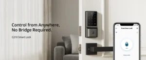 Smart Lock C210: Smart lock with built-in Wi-Fi for control from anywhere, supports unlocking by app, PIN code, key, Apple Watch and voice commands, rechargeable battery lasts up to 4 months, IPX3 splash resistant and suitable for standard doors.